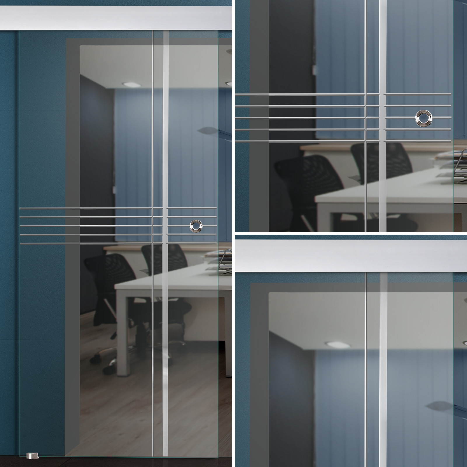 Die Glasschiebetür "Clean Lines" zeichnet sich durch die klaren Linien aus. Diese werden durch einen klaren und poliertem Kristallrillenschliff erzeugt.