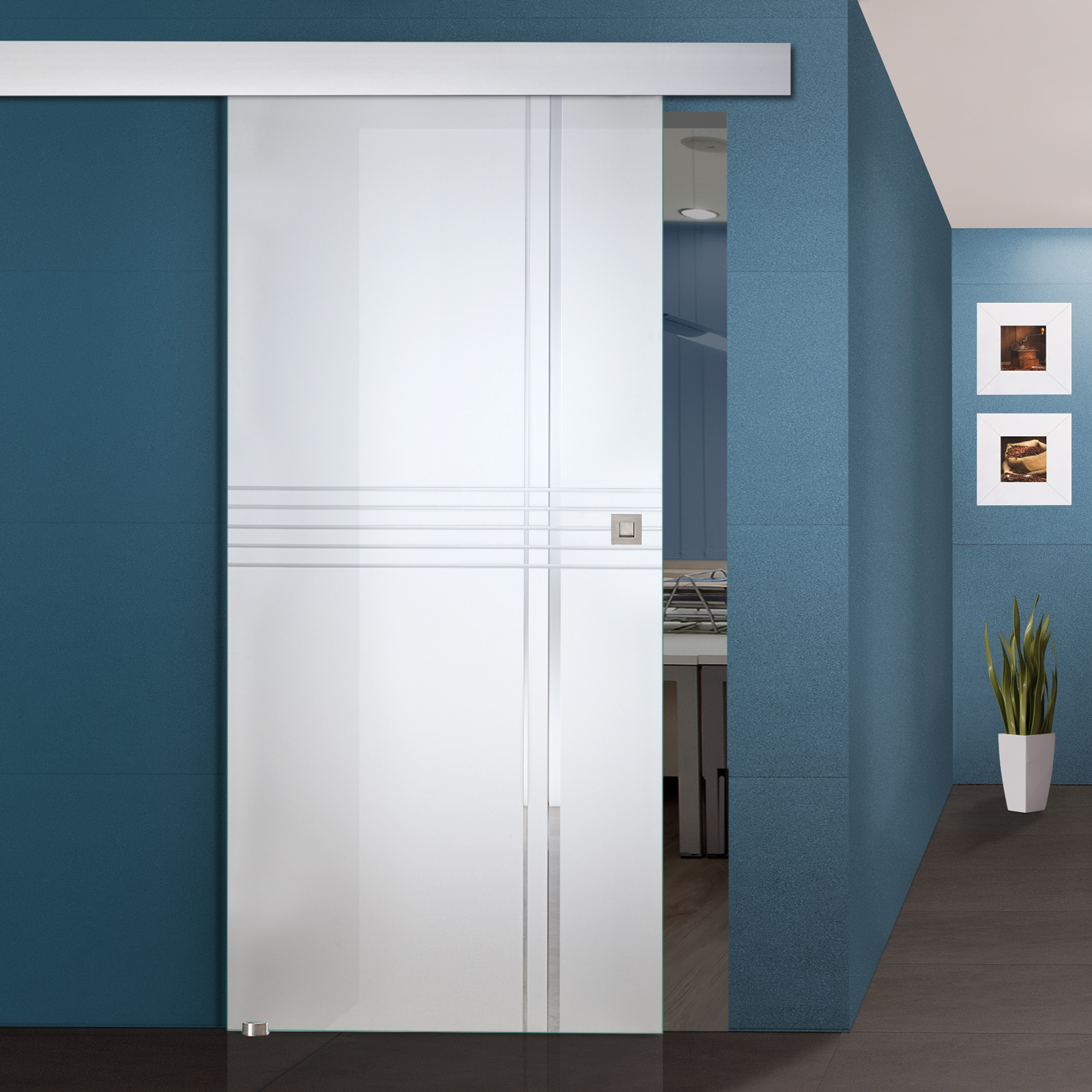 Die Glasschiebetür "Clean Lines" zeichnet sich durch die klaren Linien aus. Diese werden durch einen klaren und poliertem Kristallrillenschliff erzeugt. Durch die vollflächige Mattierung kommen die Kristallrillenschliffe gut zur Geltung. Auch eine ausreichende Privatsphäre ist durch die blickdichte Mattierung gewährleistet.