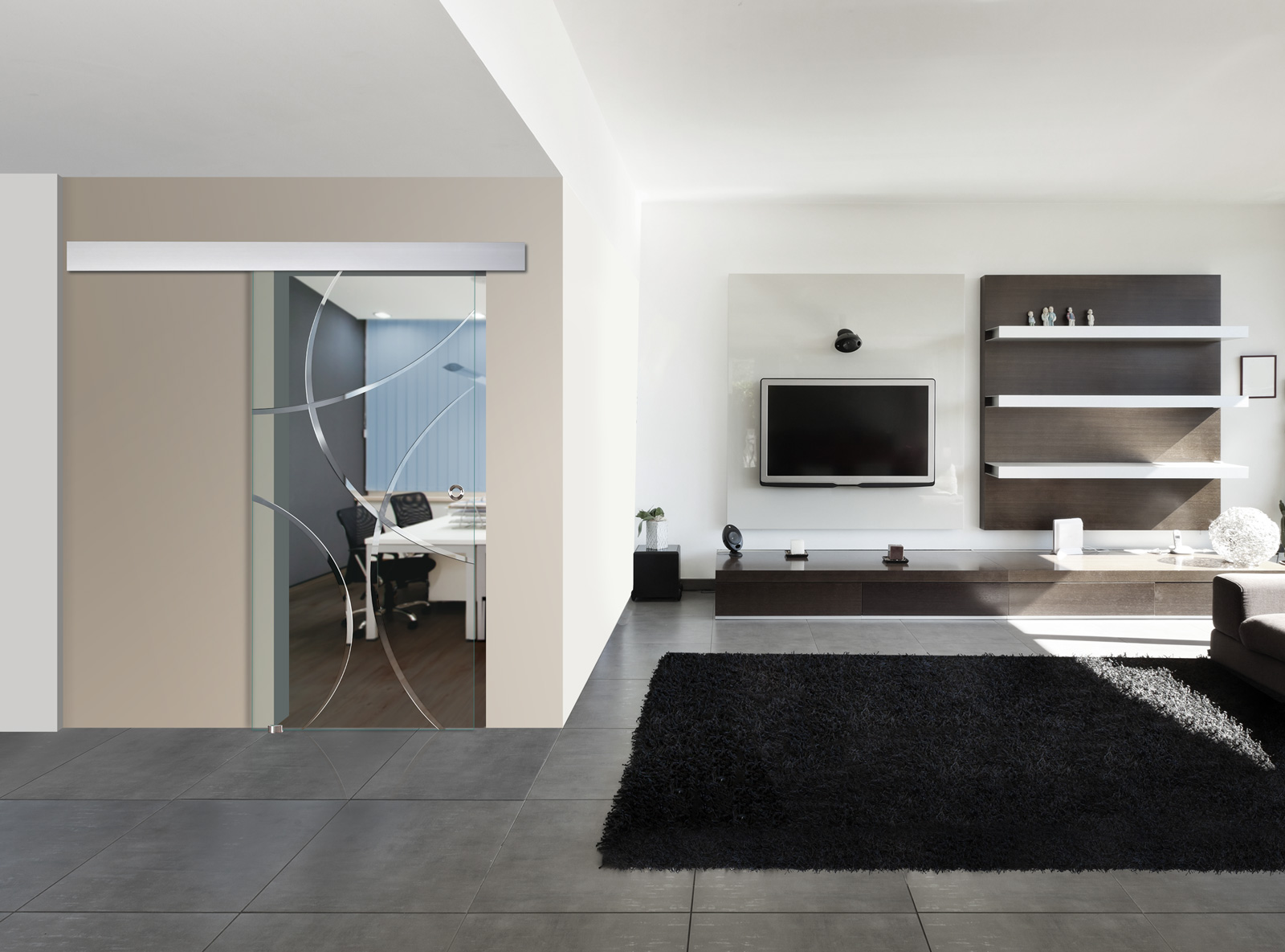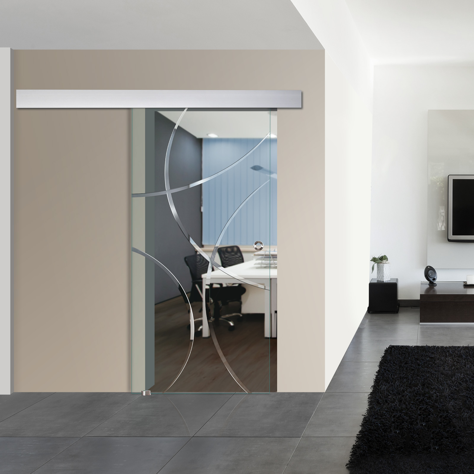 Die Glasschiebetür "Bola" ist eine moderne Schiebetür.